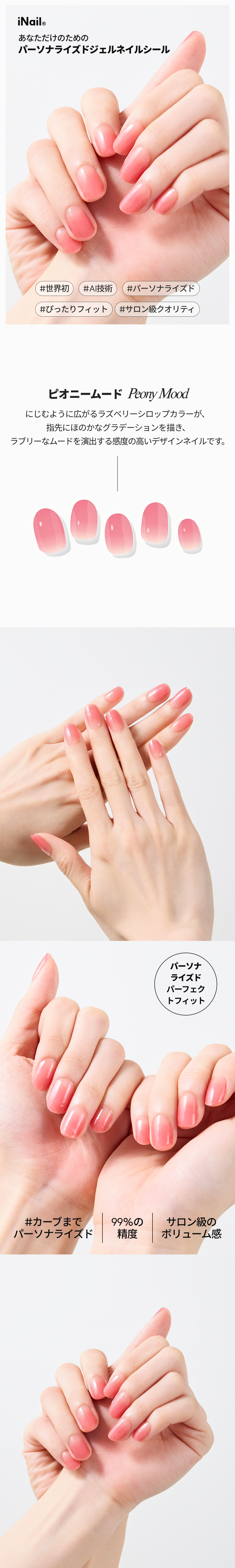 キューティクルラインに合わせて貼り、斜め方向にやさしく